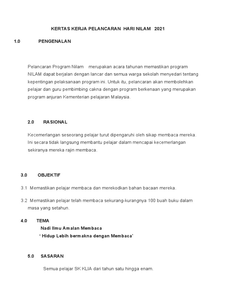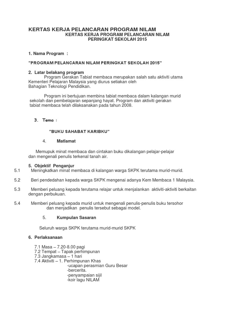 Kertas Kerja Pelancaran Program Nilam Pdf